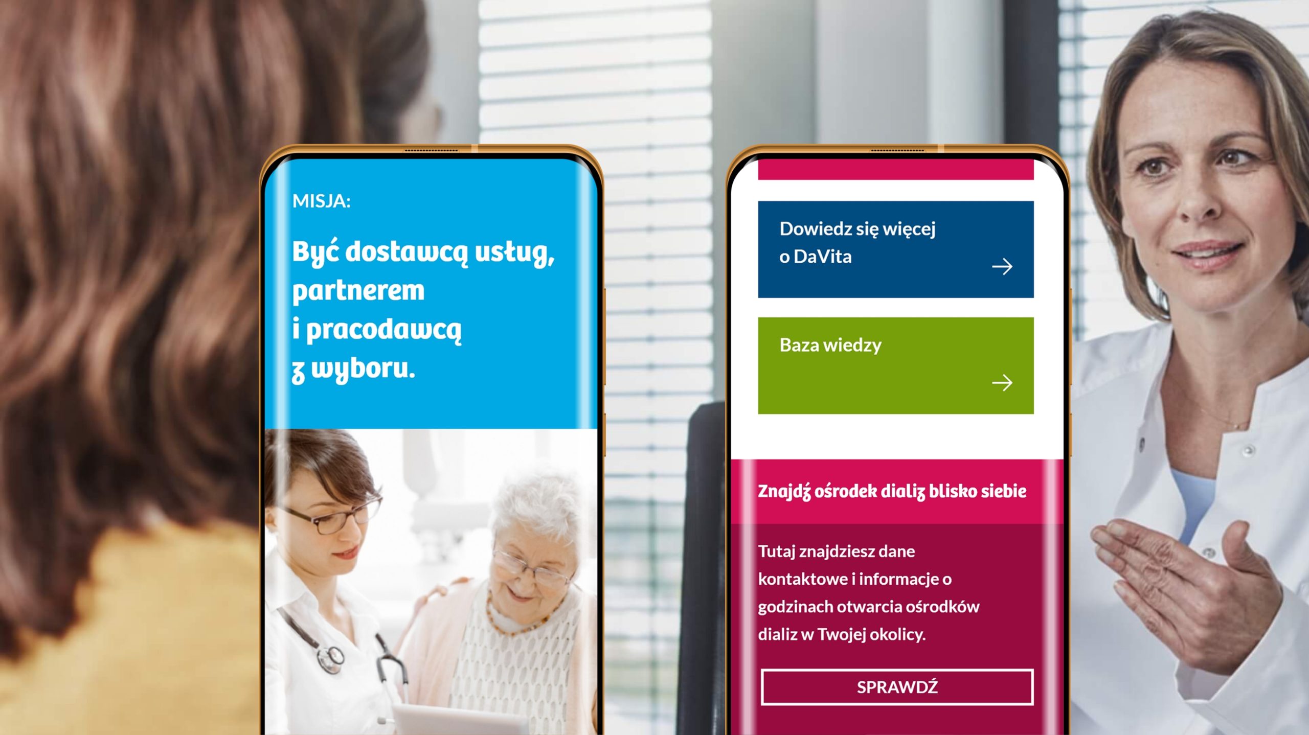 DaVita to globalny lider w dziedzinie opieki nefrologicznej, działający w kilkudziesięciu krajach na całym świecie. W Polsce firma prowadzi sieć ośrodków specjalizujących się w dializoterapii i leczeniu chorób nerek, zapewniając pacjentom kompleksową opiekę medyczną, wsparcie edukacyjne oraz nowoczesne zaplecze diagnostyczne.