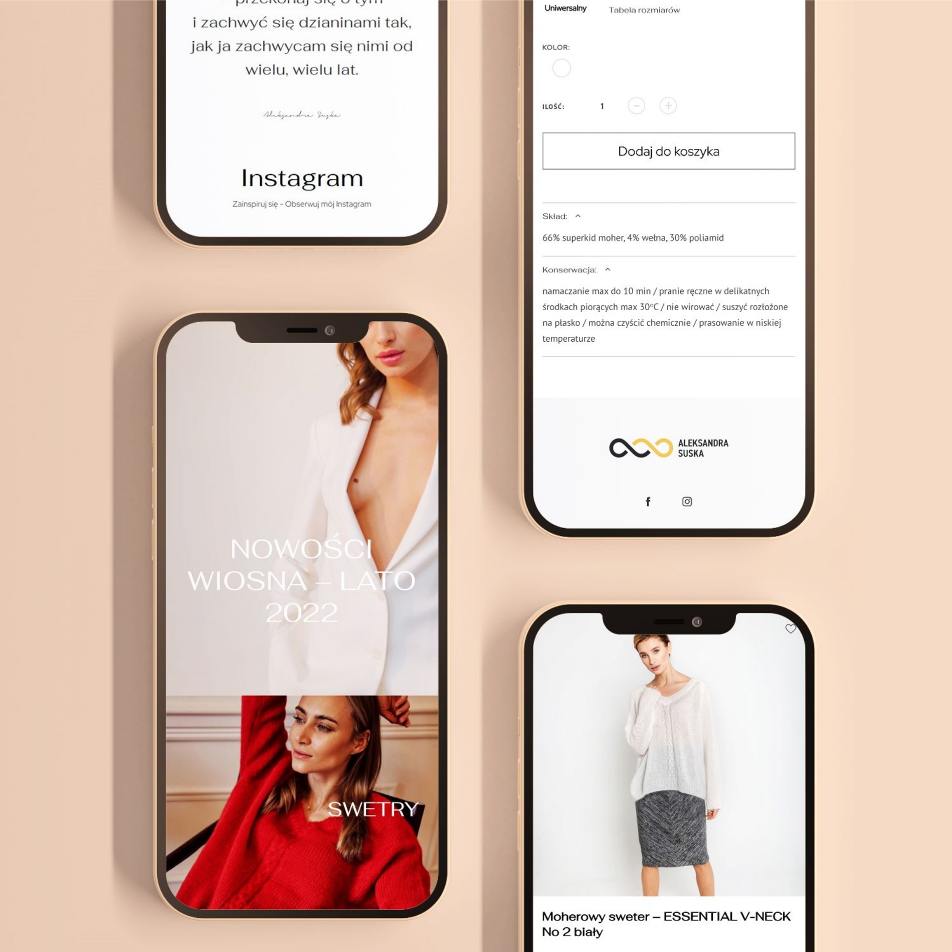 Stworzyliśmy responsywny serwis e-commerce, który wygodnie obsługuje się na wszystkich urządzeniach. W trosce o dobrze doświadczenia użytkownika, przygotowaliśmy intuicyjną stronę kasy, pokazaną na jednym widoku. Aby witryna AS Suskiej się lepiej pozycjonowała, zaprojektowaliśmy również gotowe elementy pod SEO.